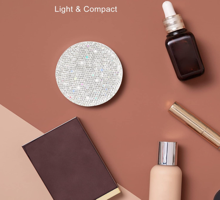 ·【Ideal Gifts with Inspirational Warm Words on Gift Box】Are you still looking for a gifts for your mother, wife, grandma, bridesmaids and girlfriend? This LED compact mirror with sparkly diamond is packaged with a velvet drawstring bags in a premium black gift box. Also has inspirational warm words on the Gift Box:To Unique You. Ideal thank you gift with stylish design.